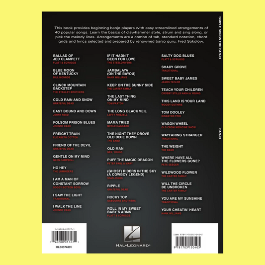 Simple Songs for Banjo Book - 40 Easy Songs to Play on 5-String Banjo