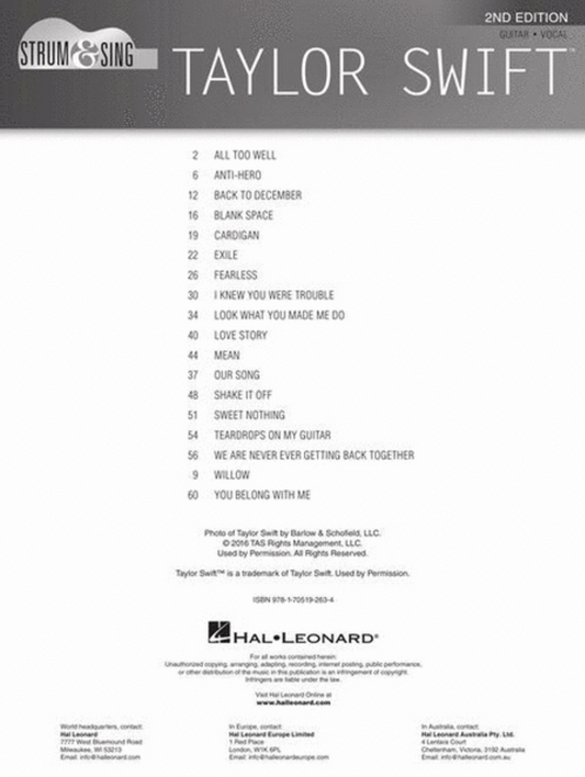 Strum & Sing Taylor Swift Songbook (2nd Edition)