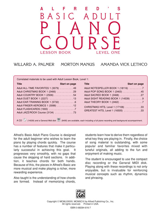 Alfred's Self Teaching Adult Piano Course Book/Ola