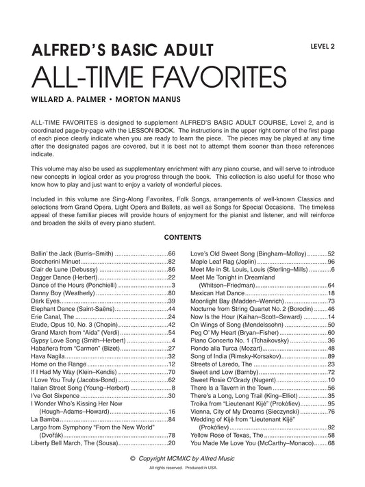 Alfred's Basic Adult Piano Course - All Time Favourites Book 2