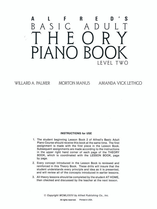 Alfred's Basic Adult Piano Course - Theory Book 2