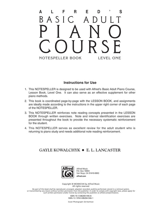 Alfred's Basic Adult Piano Course - Notespeller Book 1