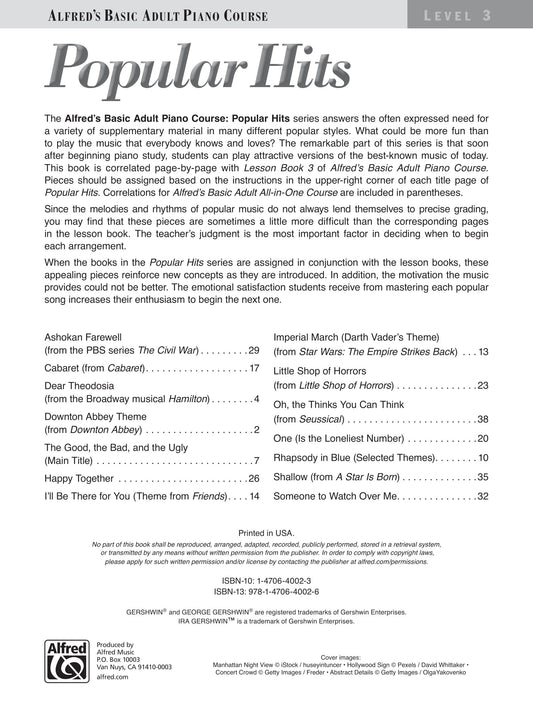 Alfred's Basic Adult Piano Course - Popular Hits Level 3 Book