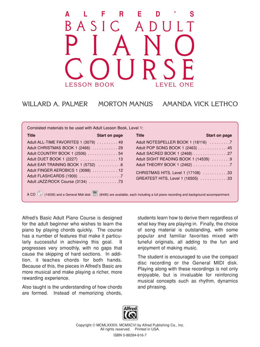 Alfred's Basic Adult Piano Course - Lesson Book 1 (Book and Cd)