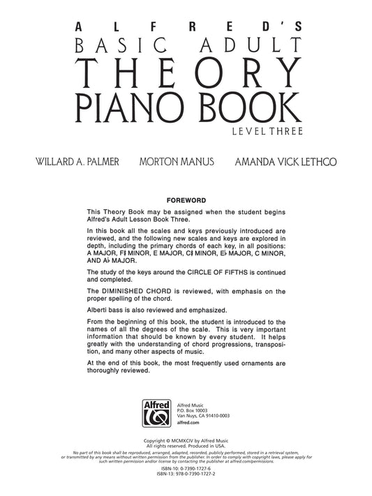Alfred's Basic Adult Piano Course - Theory Book 3
