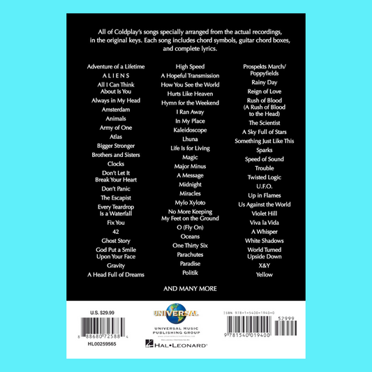 Coldplay - The Complete Guitar Chord and Vocal Songbook (2nd Edition)