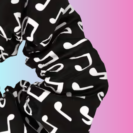 Black and White Music Notes Hair Scrunchie