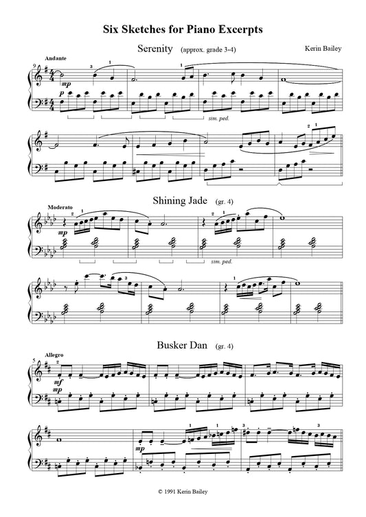 Kerin Bailey - 6 Sketches For Piano Book