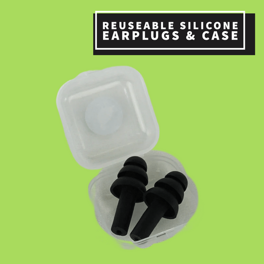 Reusable Black Silicone Earplugs With Protective Hard Case (3 Sets)
