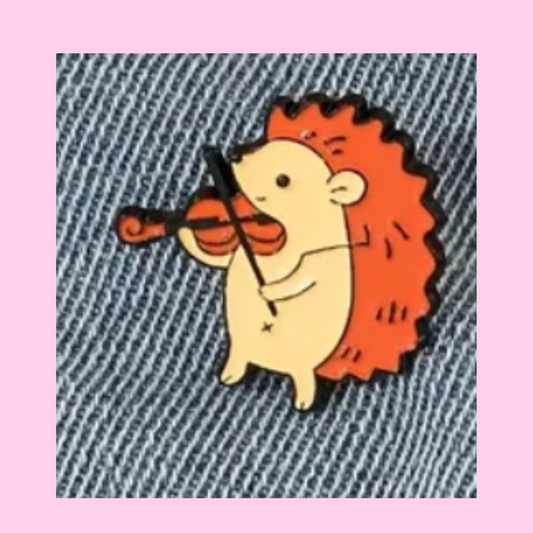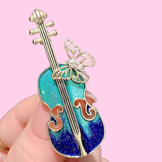 Blue Green Rhinestone Violin with Butterly Enamel Pin