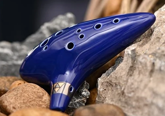 Ceramic 12 Hole Ocean Blue Ocarina with Display Stand, Bag and Songbook