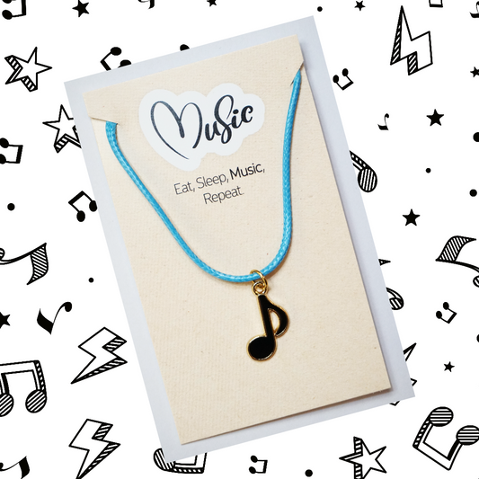 Eat. Sleep. Music. Repeat. Necklace - Quaver Note (Blue Cord)