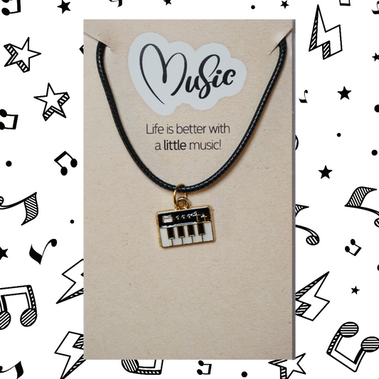 Life is Better With A Little Music Necklace - Piano/Keyboard (Black)