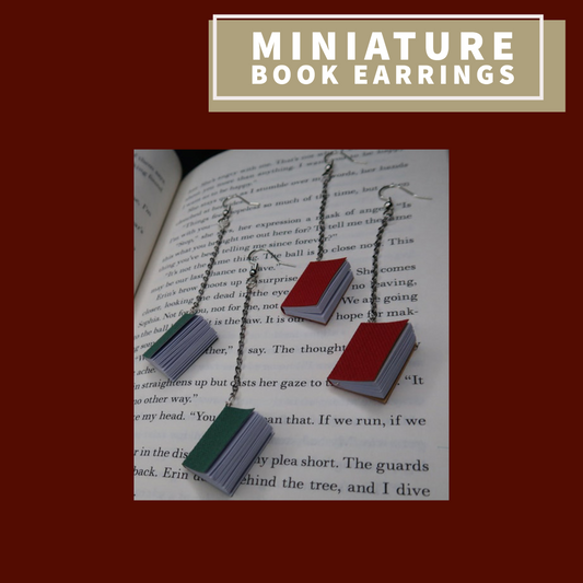 Miniature Book Earrings with Opening Pages (Burgundy)