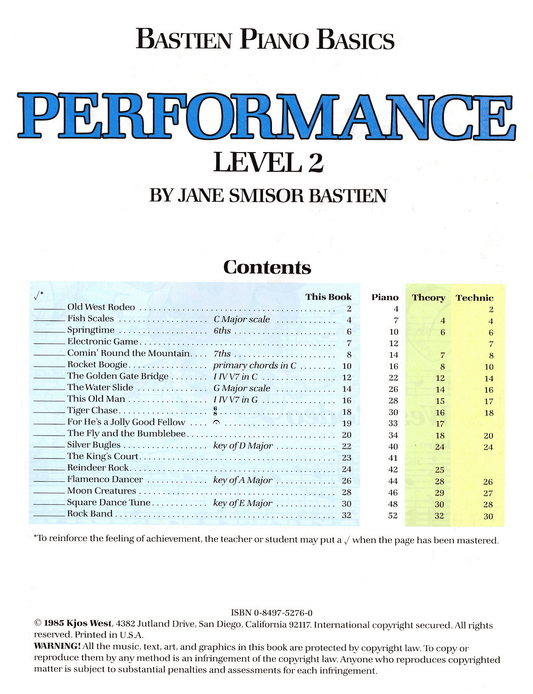 Bastien Piano Basics - Performance Level 2 Book