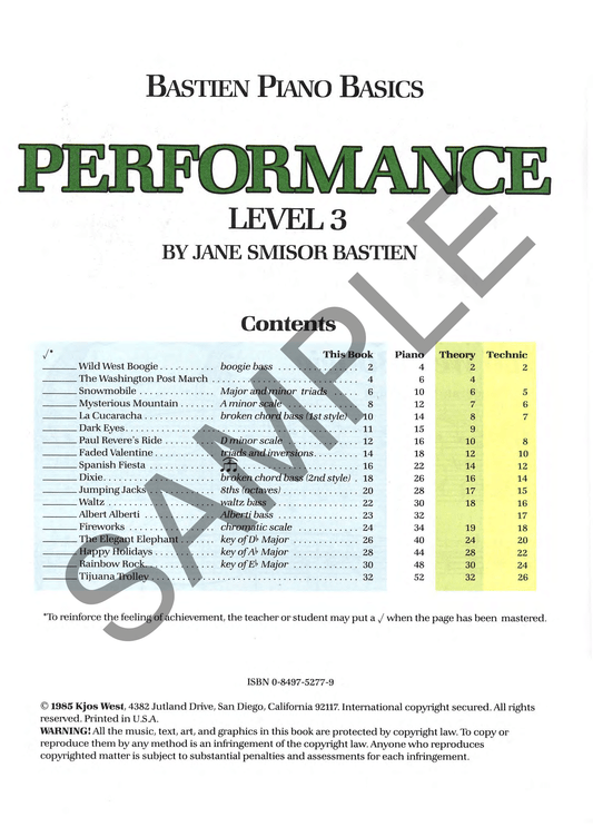 Bastien Piano Basics - Performance Level 3 Book
