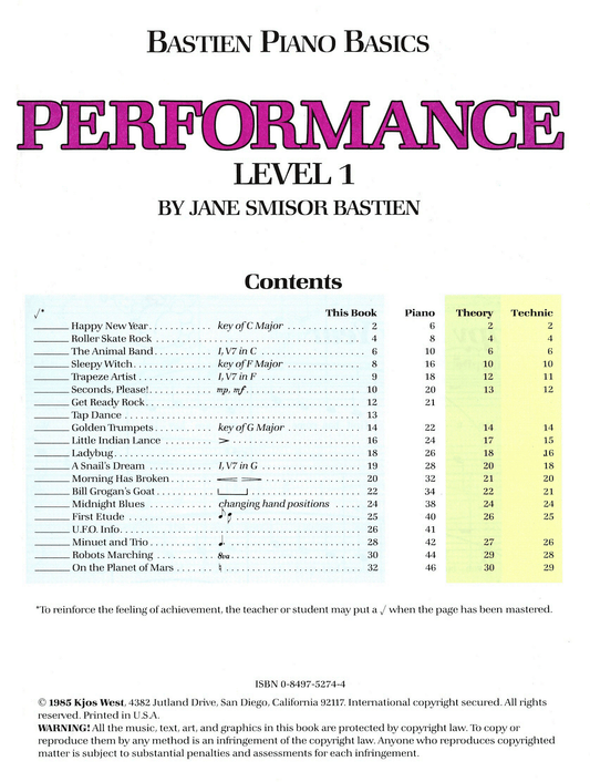 Bastien Piano Basics - Performance Level 1 Book