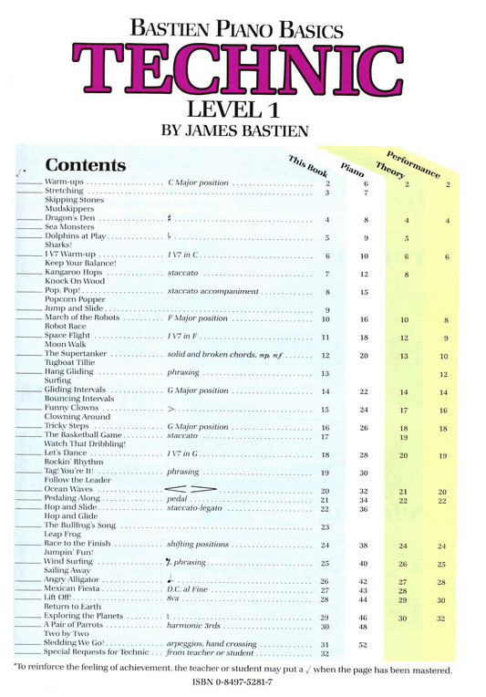 Bastien Piano Basics - Technic Level 1 Book