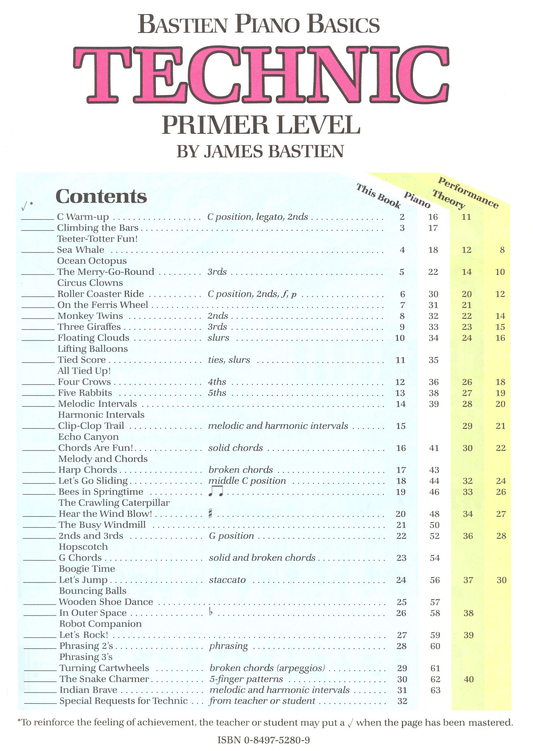 Bastien Piano Basics - Technic Primer Level Book