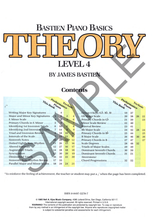 Bastien Piano Basics - Theory Level 4 Book