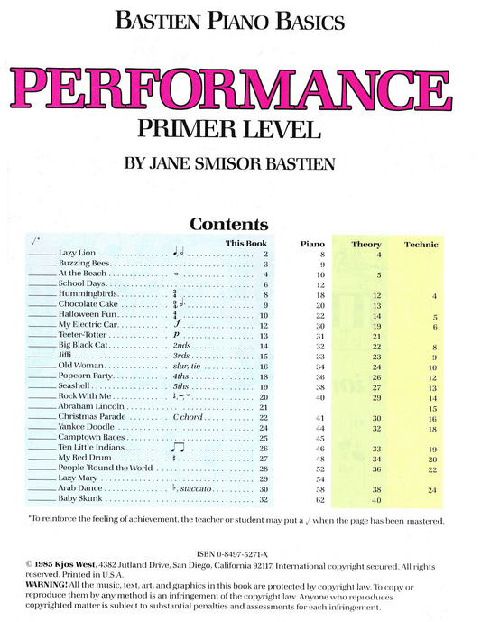 Bastien Piano Basics - Performance Primer Level Book