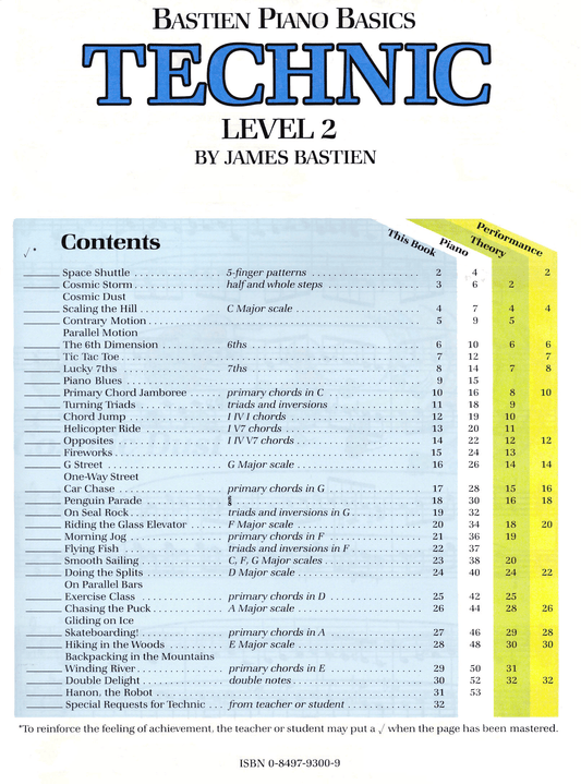 Bastien Piano Basics - Technic Level 2 Book