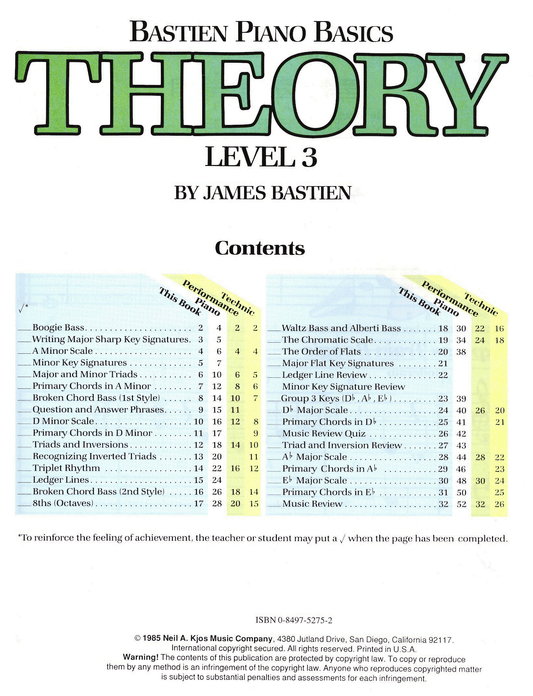 Bastien Piano Basics - Theory Level 3 Book