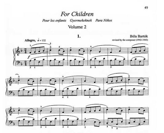 Bela Bartok For Children Volume 1 Piano Songbook (New Edition)