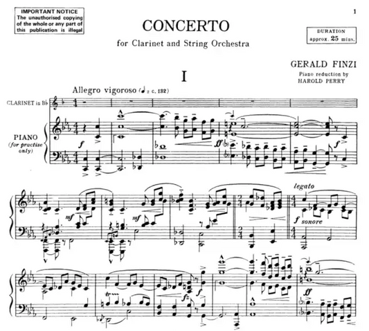 Gerald Finzi - Bb Clarinet Concerto Op 31 with Piano Accompaniment Book