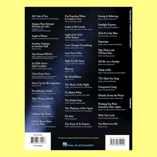 The Songs Of Andrew Lloyd Webber Trombone Book