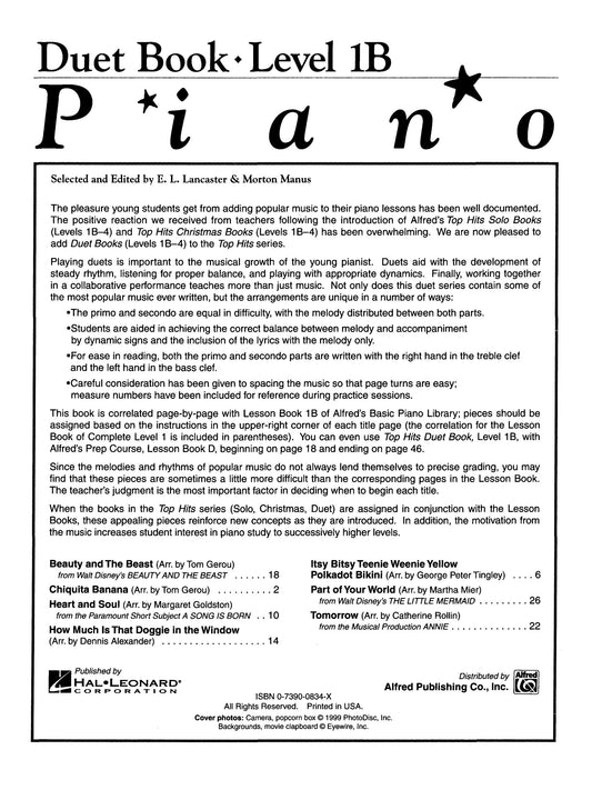 Alfred's Basic Piano Library - Top Hits Duet Book Level 1B