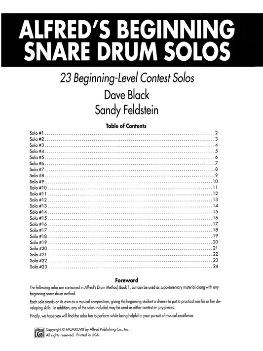 Alfred's Beginning Snare Drum Solos Book