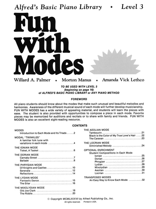 Alfred's Basic Piano Library - Fun With Modes Book