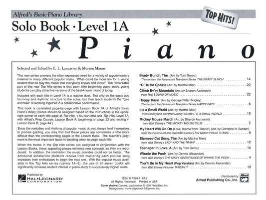 Alfred's Basic Piano Library - Top Hits Solo Book Level 1A (Book and Cd)