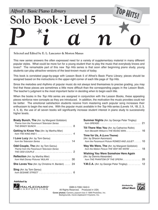 Alfred's Basic Piano Library - Top Hits Solo Book Level 5