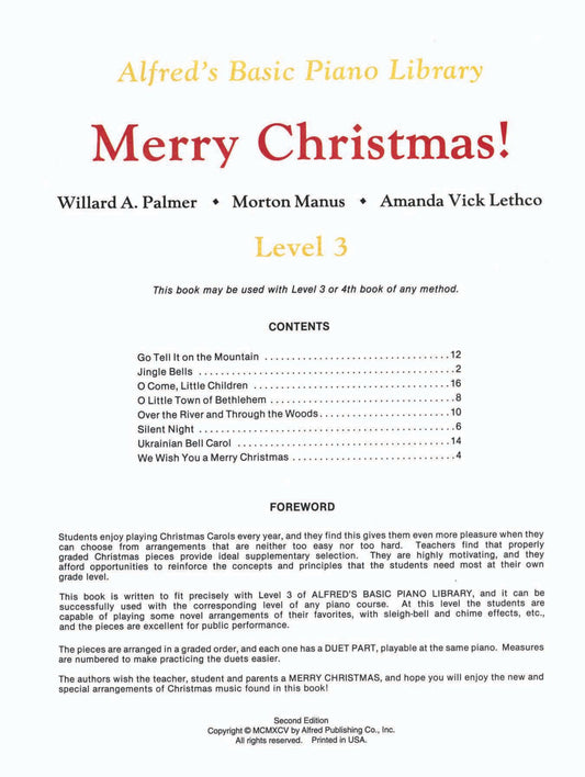 Alfred's Basic Piano Library - Merry Christmas Book Level 3