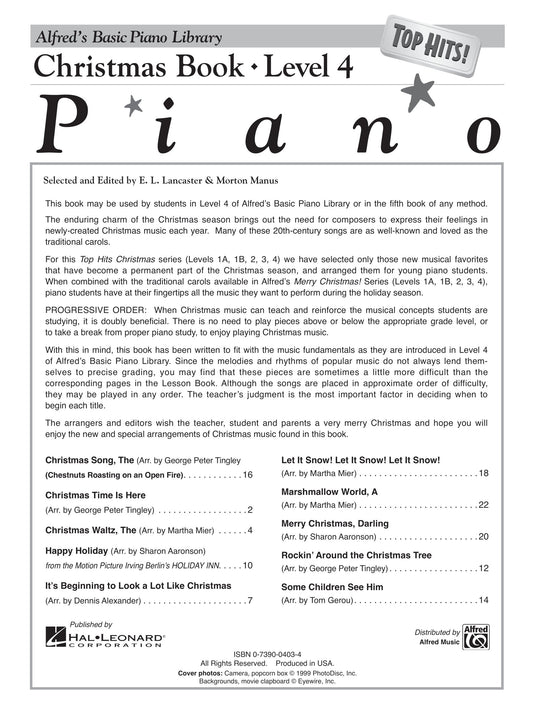 Alfred's Basic Piano Library - Top Hits Christmas Book Level 4