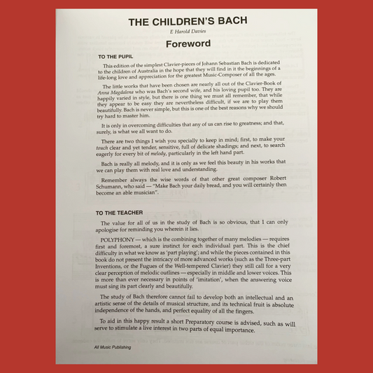 The Children's Bach Book - 30 Easy Pieces For Piano
