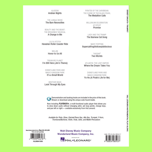 Disney Greats For Tenor Saxophone Play Along Book/Ola