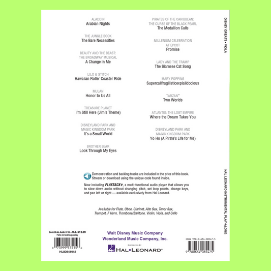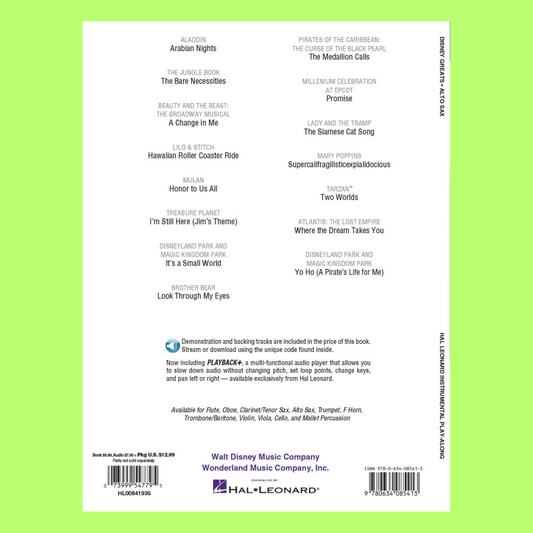 Disney Greats For Alto Saxophone Play Along Book/Ola