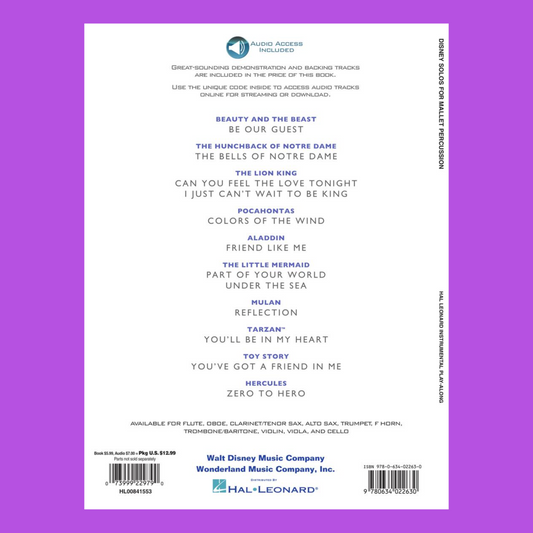 Disney Solos - For Mallet Percussion Play Along Book/Ola