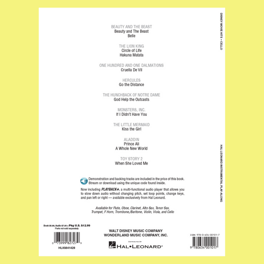Disney Movie Hits For Trombone/Baritone Play Along Book/Ola