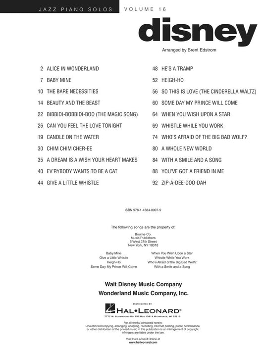 Disney - Jazz Piano Solos Series Volume 16 Book