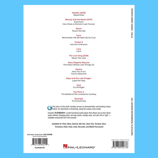 Favorite Disney Songs For Cello - Play Along Book/Ola
