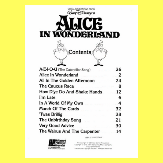 Alice In Wonderland - Vocal Selections PVG Songbook