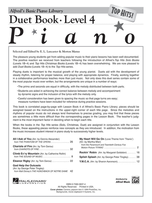Alfred's Basic Piano Library - Top Hits Duet Level 4 Book