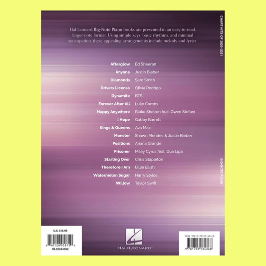 Chart Hits Of 2020-2021 - Big Note Piano Songbook