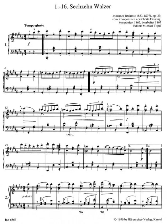Brahms Easy Piano Pieces and Dances Urtext Book