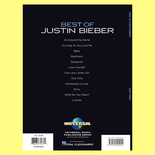 Best Of Justin Bieber - Easy Piano Book