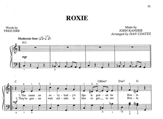 Chicago Movie Selections Easy Piano Songbook